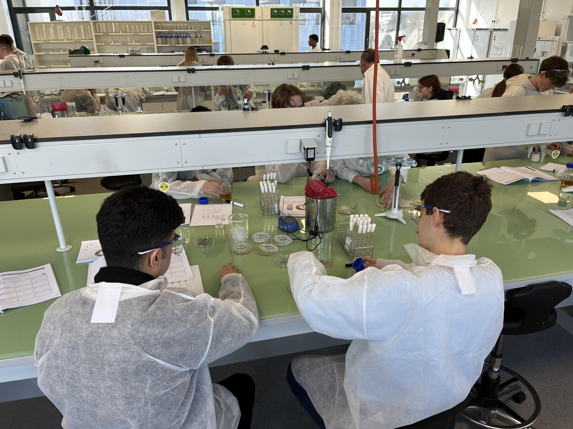 In het laboratorium van Rijn IJssel college hebben ze daar onderzoek gedaan naar de aanwezigheid van verschillende voedingsstoffen en de aanwezigheid van bacteriƫn. Ze hebben kennis gemaakt met het werken in een laboratorium en ook even mogen kijken bij andere opleidingen bij Tech Plaza.