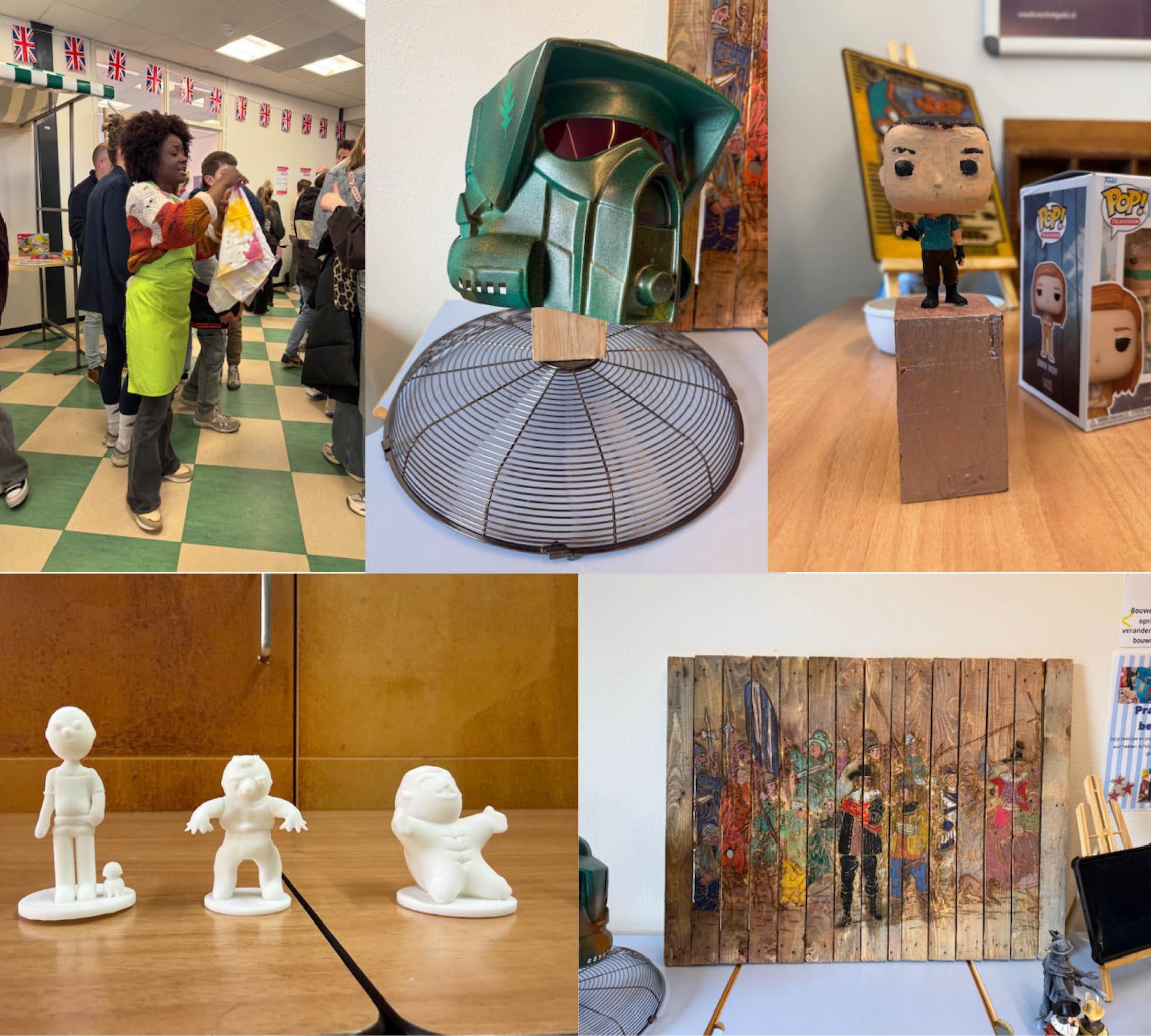 Maar liefst vier lokalen op de tweede verdieping van vmbo ’t Venster in Arnhem zijn ingericht met werkstukken die scholieren van vijf basisscholen hebben gemaakt tijdens de 8Klusklas. Van zelfbedachte en genaaide tasjes en kleding, 3D-of uitvergrote Pokémonkaarten en insectenhotels tot appel- en groententaartjes, posters en keramiek, alles is te koop voor het goede doel: De speelgoedbank De Speelstoet. Leerlingen en hun ouders zijn enthousiast over deze samenwerking tussen PO en VO: ‘Dit is echt leren vanuit interesse en nieuwsgierigheid.’