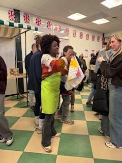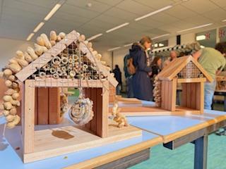 Annamarie, moeder van Lotte en Stef van de Julianaschool, lacht als ze van het lokaal met de modeartikelen naar het lokaal met de bouwwerkstukken loopt. ‘Lotte wilde haar zelfgemaakte tasje kopen, maar dat is al verkocht.’ Haar dochter koos het vak mode en werkte onder meer met een naaimachine.